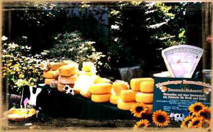 Unsere Käsesorten: Natura, Brennessel, Curry, Knoblauch, Kräuter, Bockshorn, Kümmel, Paprika-Knoblauch, Pfeffer, Schnittlauch, Tomaten-Basilikum, Basilikum- Knoblauch, Kräuter-Knoblauch, Zwiebel-Pfeffer-Paprika